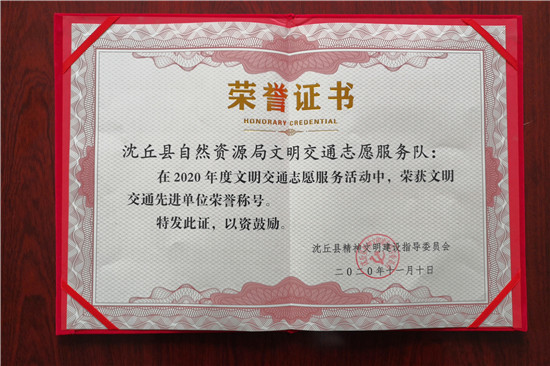 為大力弘揚(yáng)“奉獻(xiàn)、友愛、互動(dòng)、進(jìn)步”的志愿服務(wù)精神,樹立典型、激勵(lì)先進(jìn),近日,沈丘縣精神文明建設(shè)指導(dǎo)委員會(huì)對(duì)2020年度文明交通志愿服務(wù)活動(dòng)情況進(jìn)行通報(bào)表彰,全縣25家部門單位文明交通志愿服務(wù)隊(duì)、101名文明交通優(yōu)秀志愿者受表彰,沈丘縣自然資源局名列其中。