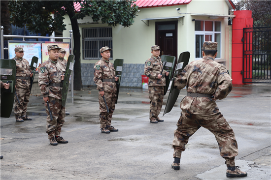 寒風吹不滅參訓隊員火熱的心,訓練場上,喊號聲陣陣,盾牌閃動,警棍揮舞,擦出梆梆的響聲,這是民兵手持警棍盾牌正在操練防暴術,軍容嚴整,神情專注。教練員親自示范、耐心細致講解,每個動作盡量做到標準規(guī)范,做到攻必克、守必固。