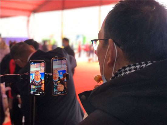 28日早上7時(shí)許,周口網(wǎng)紅俱樂(lè)部的網(wǎng)紅們和工作人員就開(kāi)始為今天的直播做準(zhǔn)備,早早把直播設(shè)備搬到現(xiàn)場(chǎng),進(jìn)行調(diào)試。10時(shí)左右,周商產(chǎn)品展示展覽活動(dòng)現(xiàn)場(chǎng)人頭攢動(dòng),熱鬧非凡,來(lái)自周口本地的9位網(wǎng)紅們陸續(xù)架好手機(jī)直播設(shè)備,打開(kāi)補(bǔ)光燈,開(kāi)始直播?,F(xiàn)場(chǎng)的9位網(wǎng)紅各有特色,有打扮時(shí)髦的美女主播,有歌聲出眾的中年大叔,年齡最大的網(wǎng)紅是今年65歲的鹿邑大爺。網(wǎng)紅們一手拿著周口的蜂蜜、空心掛面、麻花、粉條、醬豆等土特產(chǎn),一邊對(duì)著手機(jī)屏幕里的粉絲熱情地展示和介紹起來(lái),有的還直接進(jìn)行現(xiàn)場(chǎng)吃播,不時(shí)與網(wǎng)友進(jìn)行唱歌、聊天互動(dòng),吸引了不少行人前來(lái)觀看?!霸瓉?lái)在抖音上看過(guò)網(wǎng)紅帶貨,但沒(méi)見(jiàn)過(guò)真人, 今天終于見(jiàn)到真實(shí)的網(wǎng)紅了!感覺(jué)很有意思!”前來(lái)觀展的市民劉女士說(shuō)。