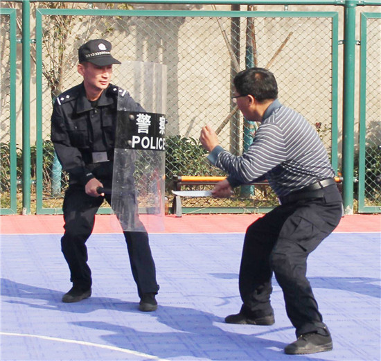 在法警大隊訓(xùn)練場,考核組一行觀看了擒敵拳和警械具使用、處置突發(fā)事件等實戰(zhàn)應(yīng)用。在處突演練過程中,5人組成的處突小組模擬各種突發(fā)情況進行實戰(zhàn)演練,法警們反應(yīng)迅速,執(zhí)法規(guī)范,短短數(shù)秒內(nèi)就將"暴徒"制服。
