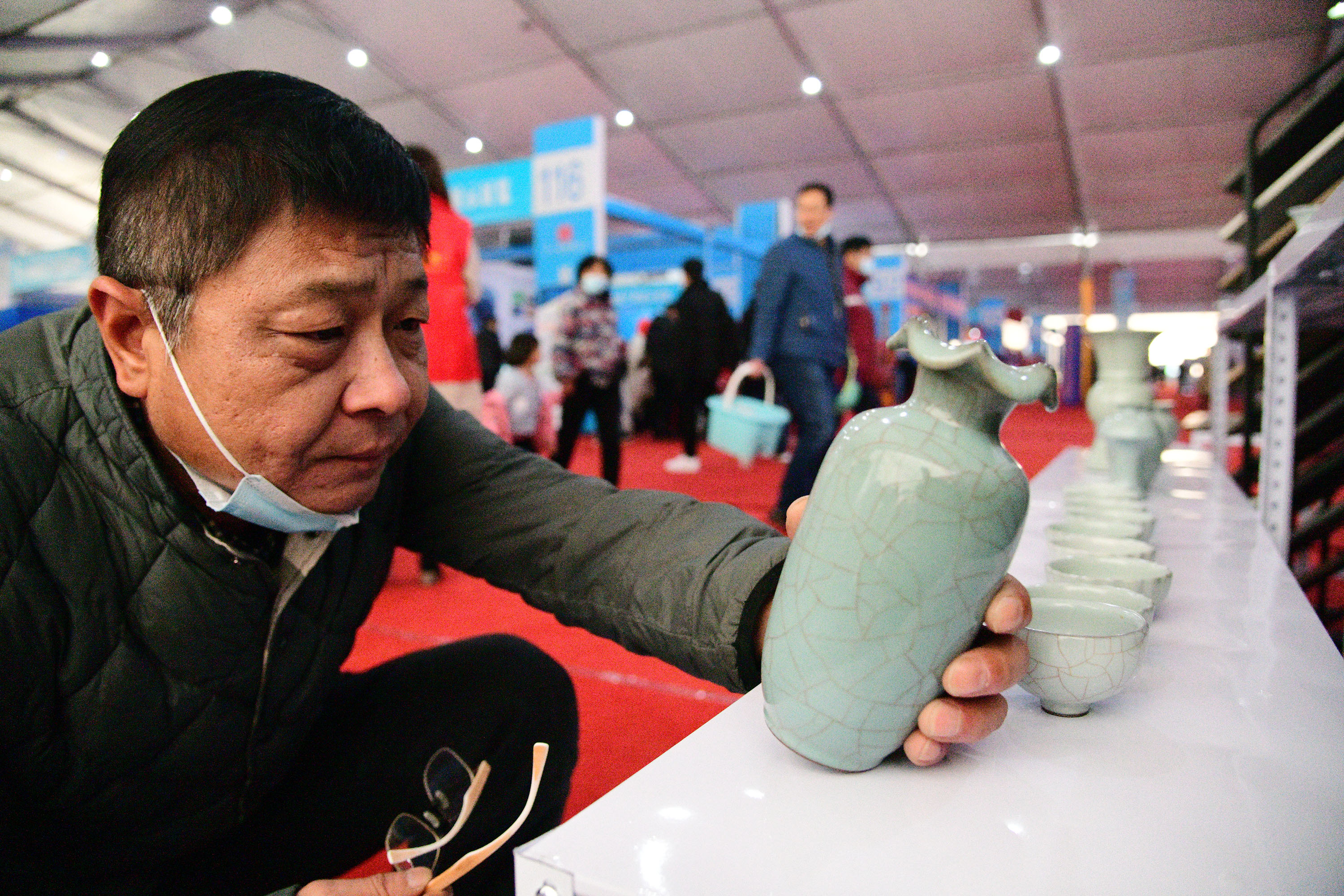 在展會(huì)上給顧客講述大宋官瓷品相的董俊,也是很厲害的周口企業(yè)家,能夠把開(kāi)封老字號(hào)的官瓷,運(yùn)營(yíng)得風(fēng)生水起,大宋官瓷瓷器和汴繡被譽(yù)為七朝古都象征性的物產(chǎn),還有大宋官茶,含有被譽(yù)為茶中黃金的“金花菌”,是“河南老字號(hào)”、“非物質(zhì)文化遺產(chǎn)”,也被選入“首屆開(kāi)封禮物”。大宋官茶源于宋神宗(公元1068年),它今天的主人是淮陽(yáng)區(qū)新站籍企業(yè)家牛華麗,這位淮陽(yáng)籍漢子從小在開(kāi)封長(zhǎng)大,對(duì)大宋官茶獨(dú)有情種,現(xiàn)在是大宋官茶掌舵人,是大宋官茶非遺傳承人。而福興齋桶子雞老總馬勇是沈丘人,這是開(kāi)封的名吃,去開(kāi)封旅游,吃桶子雞和小籠包,成為游客必須品嘗的美味。馬勇參加周商大會(huì)帶回周口的桶子雞深受家鄉(xiāng)人的喜歡,一直熱賣(mài)。而“鞋品”鞋的老總侯建峰是鄲城人,他在廣州設(shè)有代加工廠(chǎng),鞋子以河南為主要市場(chǎng),在開(kāi)封城由五個(gè)專(zhuān)賣(mài)店,同時(shí)也銷(xiāo)往全國(guó)。