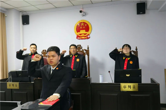 年末歲尾,在各審判庭一線工作忙碌的各辦案團(tuán)隊(duì),同樣右手舉拳,莊嚴(yán)誦讀誓詞。