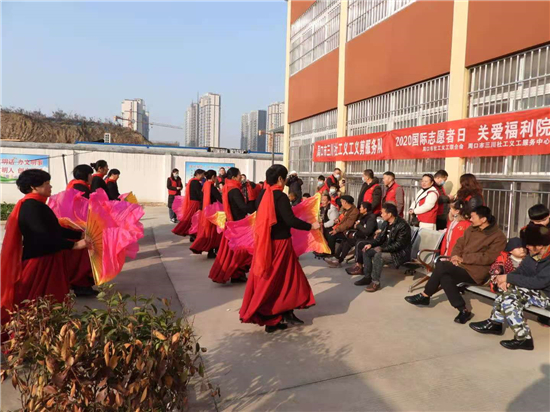 當(dāng)日上午,志愿者為老人和孩子送去了牛奶、面包、火腿腸等生活用品,義務(wù)為他們理發(fā)、剪指甲,并獻(xiàn)上了精彩的文藝節(jié)目。