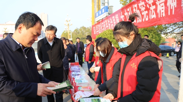 12月3日,在第七個(gè)國家憲法日來臨之際,周口市委政法委、周口市法學(xué)會(huì)、川匯區(qū)法學(xué)會(huì),聯(lián)合團(tuán)體會(huì)員單位市博物館、市文物保護(hù)中心開展憲法、國家安全、反邪教宣傳活動(dòng),讓遵守憲法和法律在全社會(huì)成為習(xí)慣、成為自覺。周口市委政法委副書記張曉、二級調(diào)研員朱建民參加普法宣傳活動(dòng)。