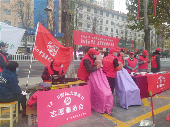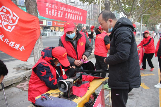 12月6日下午,周口市慈孝文化促進會、周口環(huán)境保護協(xié)會的志愿者來到周口中心城區(qū)五一文化廣場開展以愛心剪發(fā)、免費剪裁、修補衣褲為主要內容的便民志愿服務活動。