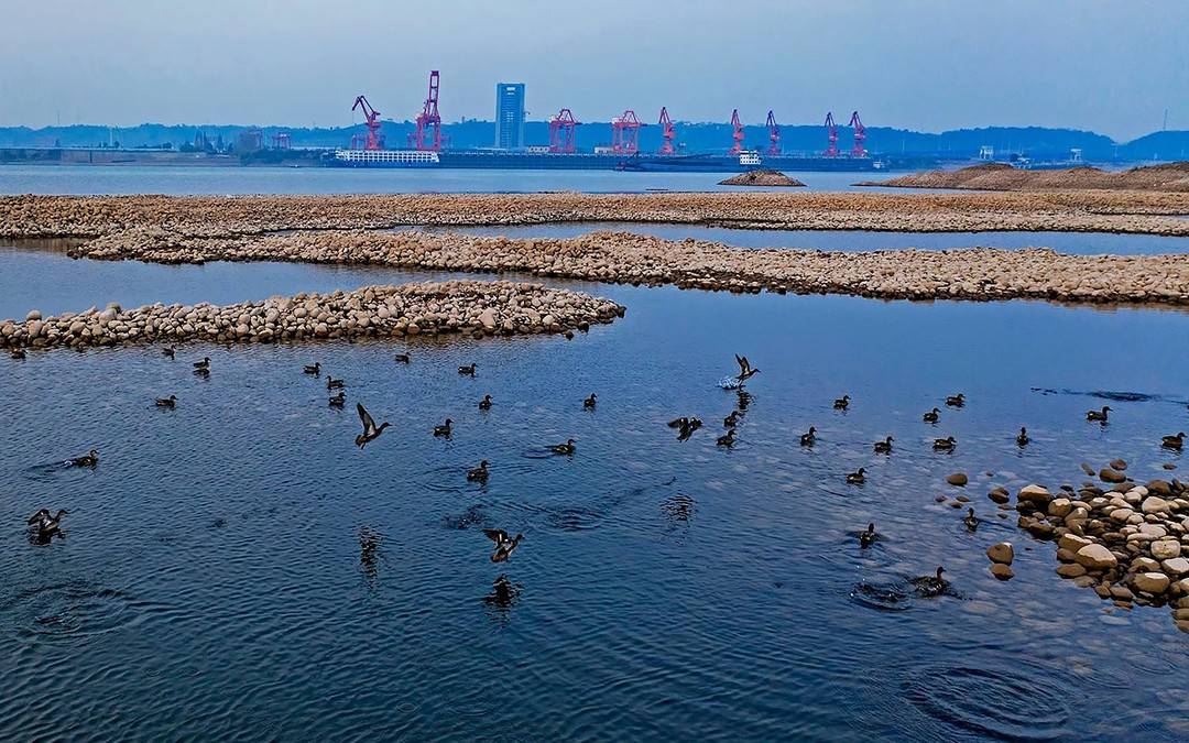 在枝江,取締非法船塢、碼頭,關(guān)停砂石廠,進行生態(tài)復(fù)綠,昔日荒蕪的岸坡,正在蝶變成一條既可見碧水浩蕩東流,又可見飛鳥嬉戲灘涂的濱江生態(tài)廊道;