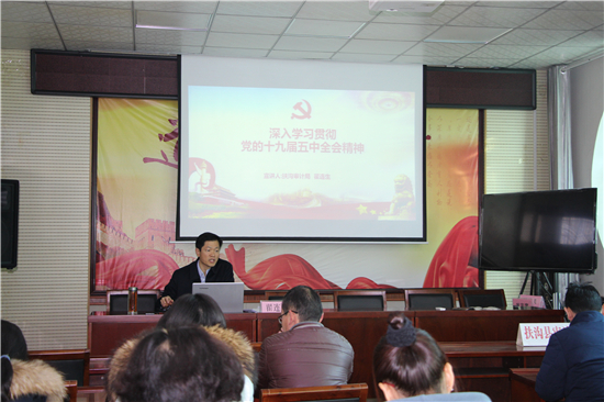 “黨的十九屆五中全會是在我國將進(jìn)入新發(fā)展階段、實(shí)現(xiàn)中華民族偉大復(fù)興正處于關(guān)鍵時期召開的一次具有全局性、歷史性意義的會議?!?2月19日,扶溝縣審計局召開學(xué)習(xí)貫徹十九屆五中全會精神宣講大會,由局黨組書記翟連生作宣講報告,該局全體干部職工共40余人參加了宣講會。