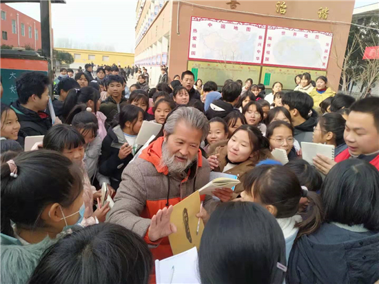 書畫家們的到來,受到學(xué)子們的歡迎,千名學(xué)生將書畫家們團(tuán)團(tuán)圍住,像追星一樣,討教書法藝術(shù)。書畫家門興致盎然,揮毫潑墨,留下 “上善若水”“業(yè)精于勤”、及花鳥圖、山水畫等作品100余幅,并與師生現(xiàn)場互動(dòng)、傳經(jīng)送道、指點(diǎn)學(xué)生書法作品的得失。