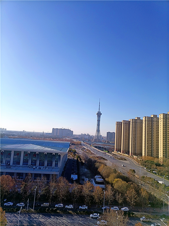 不論城市還是鄉(xiāng)村,雪后初晴的風(fēng)光向來美如畫卷。有詩云:“雪后風(fēng)清喜鵲鳴,天藍地白水澄瑩?!?2月30日,我市天氣晴朗,被小雪“凈化”后的世界顯得更加美好。尤其是蔚藍且澄凈的天空,美得令人心醉。③5