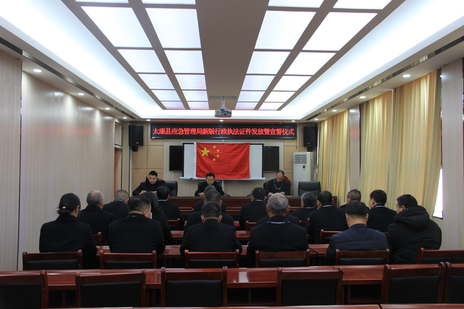“我是一名行政執(zhí)法人員,我鄭重向祖國、向人民宣誓: 忠于國家,忠于人民,忠于憲法和法律;堅持執(zhí)法為民, 堅持依法行政,維護公平正義……”。12月31日上午,太康縣應(yīng)急管理局新版行政執(zhí)法證件發(fā)放暨宣誓儀式上,取得行政執(zhí)法證件的執(zhí)法人員面向國旗莊嚴(yán)宣誓。