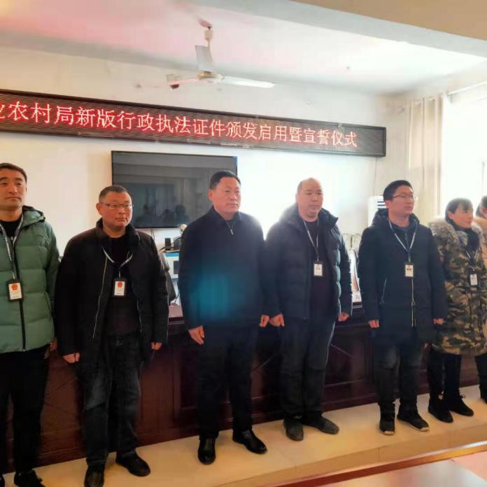“我鄭重向祖國、向人民宣誓:忠于國家,忠于人民,忠于憲法和法律;堅持執(zhí)法為民,堅持依法行政,維護(hù)公平正義;以維護(hù)人民群眾利益、維護(hù)法律權(quán)威為已任,有法必依,違法必究,認(rèn)真履行法定職責(zé)?!?2月31日上午9時,鹿邑縣農(nóng)業(yè)農(nóng)村局在三樓會議室召開新版農(nóng)業(yè)綜合行政執(zhí)法證件頒發(fā)啟用暨宣誓儀式大會。該局局長陳東振為51名執(zhí)法人員辦法了新版行政執(zhí)法證并提出具體要求。副局長丁文杰主持宣誓儀式大會并領(lǐng)誓。