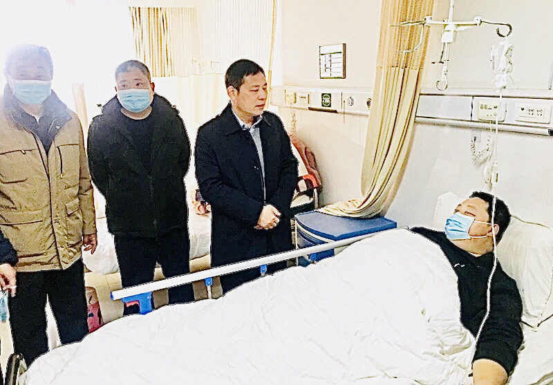 在醫(yī)院病房,陳鳳祥詳細(xì)了解朱樂樂的病情和治療情況,詢問其家庭情況和生活狀況,表達(dá)了公安局黨委非常重視民警、輔警身體健康情況的心情,并送上慰問金。同時,叮囑朱樂樂要保持樂觀心態(tài),安心養(yǎng)病,爭取早日康復(fù),回到工作隊(duì)伍。