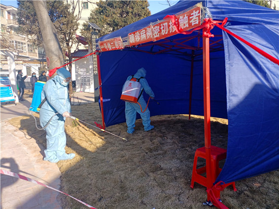 演練開始后,公安部門按照新冠肺炎疫情公共衛(wèi)生應(yīng)急處置預案要求,立即下達指令,派出所民警到達現(xiàn)場維護秩序,區(qū)域控制,拉警戒線,嚴格管控人員,禁止一切車輛和人員通行。街道辦事處迅速組織社區(qū)干部及社區(qū)網(wǎng)格員開展核酸檢測和宣傳動員工作,根據(jù)應(yīng)急預案分工開展群眾宣傳動員工作,并對患者居住單元電梯樓道等公共區(qū)域進行消毒。工作人員到確診患者家對2名密切接觸者進行流調(diào)和健康教育,將密切接觸者用120負壓救護車單人單車轉(zhuǎn)運至集中醫(yī)學隔離觀察點,對確診病例家庭環(huán)境進行采樣和消殺。