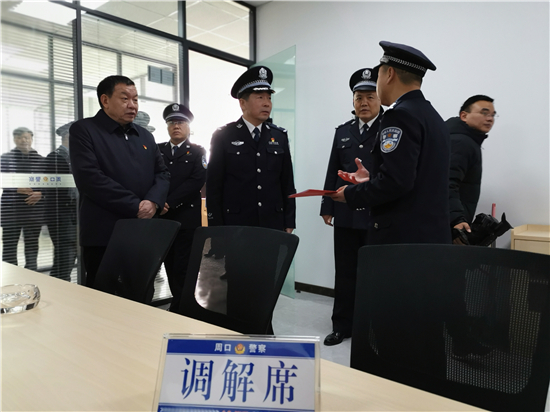 揭牌儀式后,參加儀式的全體人員實(shí)地參觀了華耀城派出所軟硬件設(shè)施等。據(jù)了解,該派出所學(xué)習(xí)借鑒一線先進(jìn)城市公安派出所營房建設(shè),具備群眾接待區(qū)、非警務(wù)警情分流區(qū)、民警工作區(qū),分區(qū)合理,同時(shí)派出所視頻指揮室更是具備了警務(wù)可視化、和警務(wù)搜索查找功能,以科技服務(wù)破案、服務(wù)民生。派出所的成立,對進(jìn)一步提升轄區(qū)打防管控水平、營造和諧穩(wěn)定的營商環(huán)境必將起到積極的推動(dòng)作用。作為華耀城派出所首任所長邵海濤表示,全所上下將始終堅(jiān)持“不忘初心、牢記使命”,大力弘揚(yáng)新時(shí)代周口公安精神,忠誠履職、忠于職守,以最高標(biāo)準(zhǔn)、最佳狀態(tài),為轄區(qū)群眾保駕護(hù)航。