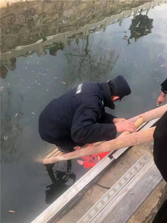1月10日12時(shí)左右,鹿邑縣公安局特巡警大隊(duì)東關(guān)警亭值班人員,接到指揮中心指令稱(chēng):苑家園北側(cè)護(hù)城河里有一名女子落水。接到報(bào)警后,帶班隊(duì)長(zhǎng)武偉迅速帶領(lǐng)特警隊(duì)員姚留地、張景濤、倪亞彬等人趕到現(xiàn)場(chǎng)。