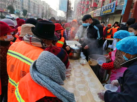 活動當(dāng)天,在鑫豐苑·瑞隆府售樓部門口彌漫著臘八粥的香味。為了能讓大家喝到新鮮的臘八粥,這家愛心企業(yè)人員凌晨4點(diǎn)就開始忙碌了,在做好疫情防控的前提下,他們仔細(xì)挑選材料、淘洗、入鍋,經(jīng)過兩個多小時的精心熬制,終于讓大家吃上了甜甜糯糯的臘八粥。暖暖的臘八粥,讓大家共同感受節(jié)日的氣氛。"打掃衛(wèi)生來得早,沒時間為家人熬粥,喝了這一碗熱乎乎的臘八粥,感覺渾身暖乎乎的",環(huán)衛(wèi)工人李女士說。