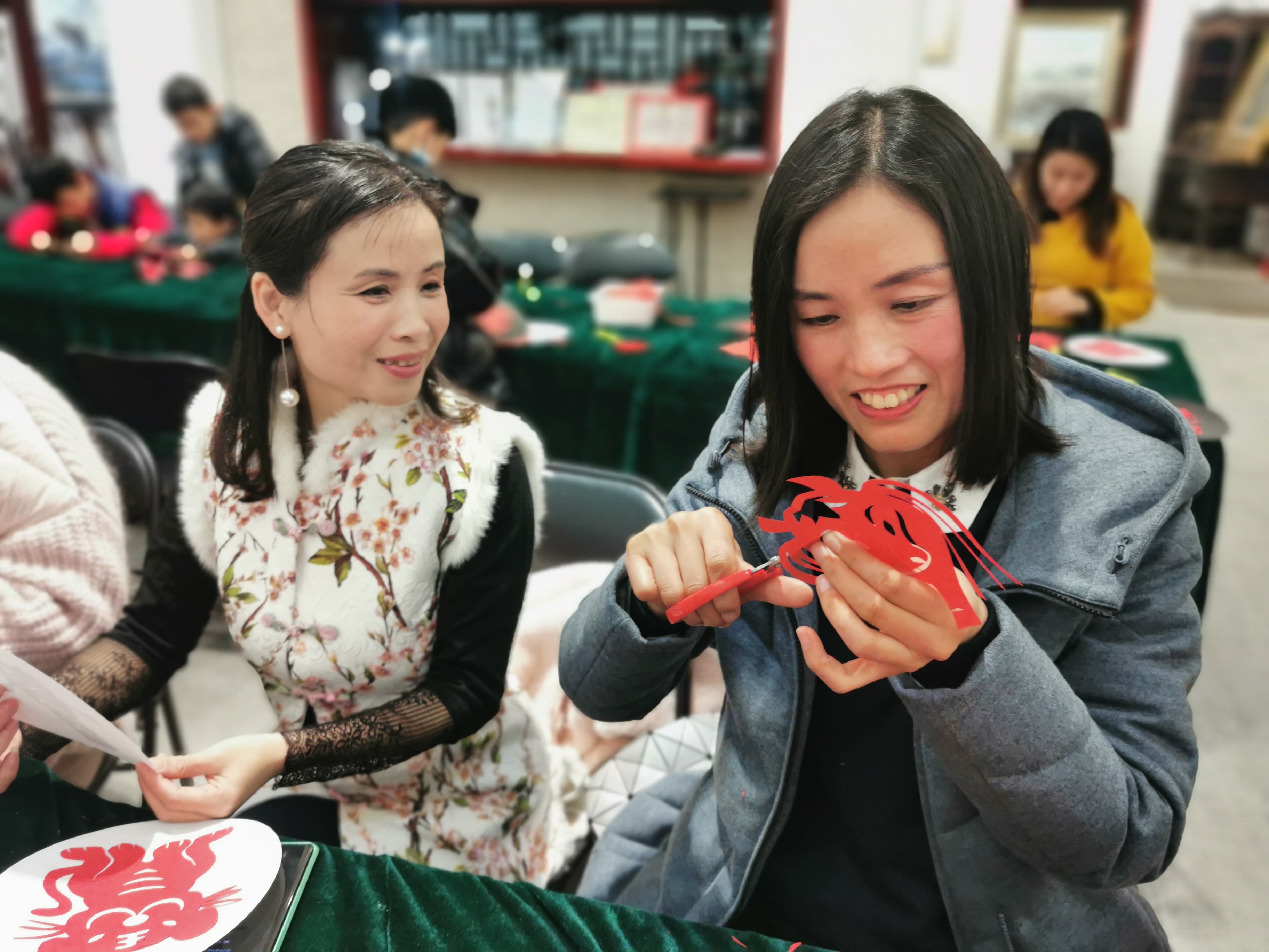 剪紙表現(xiàn)了中華民族淳厚雋永的民情與民風(fēng),是中國(guó)民間最為流行的一種藝術(shù)形式。為了讓大家學(xué)習(xí)、傳承這種極具傳統(tǒng)色彩的藝術(shù),蕓雅讀書(shū)社組織了學(xué)習(xí)剪紙的活動(dòng)。現(xiàn)場(chǎng),大家用剪刀在紅紙上剪出福、祿、壽、喜和各種圖案,極具喜慶吉祥的寓意,讓人們感受到了傳統(tǒng)新年的熱鬧。②8