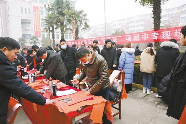 1月23日上午,項(xiàng)城市中等專業(yè)學(xué)校、市書法家協(xié)會(huì)聯(lián)合開展了“我們的節(jié)日——義寫春聯(lián)進(jìn)校園”活動(dòng),黃樹民等6位書法家受邀來(lái)校為廣大師生義務(wù)書寫春聯(lián)。師生代表紛紛請(qǐng)名家為自己寫春聯(lián),整個(gè)活動(dòng)洋溢著歡樂(lè)祥和的氣氛。“我們的節(jié)日——義寫春聯(lián)進(jìn)校園”活動(dòng)不僅繼承和發(fā)揚(yáng)了中華優(yōu)秀傳統(tǒng)文化,而且豐富了在校師生的精神文化生活,助力了書香校園建設(shè),堅(jiān)定了師生的文化自信。 李立云 郭新明 攝