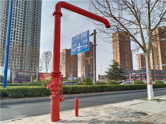 2月1日,記者在周口中心城區(qū)文昌大道與大慶路交叉口附近看到,一個高約三四米,伸著“長脖子”,長相奇特的裝置(如圖)出現(xiàn)在街道邊,讓路過市民頗為驚奇。據(jù)悉,該裝置名為消防水鶴,能在各種天氣條件下為消防車快速給水,有效提高滅火救援效率。