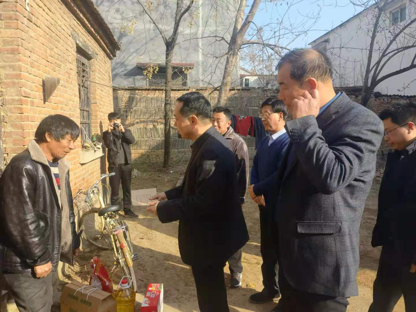 敢莊行政村困難群眾苑海軍腿腳不便,妻子雙目失明,一個女兒已經(jīng)出嫁,家庭經(jīng)濟(jì)困難。程若光在了解了苑海軍的家庭情況、身體狀況、生產(chǎn)生活問題后,問他們目前存在哪些困難,有什么事區(qū)里、鄉(xiāng)里急需幫助的。苑海軍說,鄉(xiāng)、村對他照顧得很好,他對黨和政府的關(guān)懷非常感謝!
