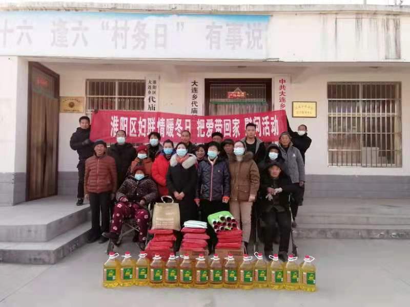 為把省、市婦聯(lián)“關(guān)于做好2021年春節(jié)慰問困難婦女兒童和家庭關(guān)愛幫扶工作的通知”精神落到實(shí)處,2月2日,淮陽區(qū)婦聯(lián)帶著威士德教育、市級(jí)巧媳婦就業(yè)創(chuàng)業(yè)示范基地霖海服飾有限公司捐贈(zèng)的愛心物資,先后深入到大連鄉(xiāng)代廟行政村、產(chǎn)業(yè)集聚區(qū)棠棣行政村開展“情暖冬日 把愛帶回家”走訪慰問活動(dòng),為14戶貧困婦女、留守兒童、困難黨員等家庭送去米、面、口罩、春聯(lián)等生活用品,并向他們送上新年的問候和祝福。