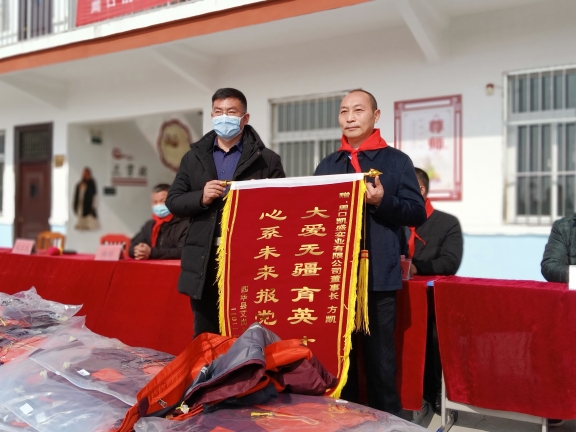 春節(jié)臨近,方凱自掏腰包6萬余元,購買164套新校服捐贈給西華縣艾崗鄉(xiāng)半截樓小學,一如既往地將大愛播撒與傳遞。說起方凱的愛心行動,那是不勝枚舉。方凱10余年來堅持幫貧濟困,每年都采取不同的方式,為貧困戶、貧困大學生、環(huán)衛(wèi)工、留守兒童、敬老院、貧困學校、福利中心智障孩子和災區(qū)等進行愛心捐助,已經(jīng)累計捐款捐物達1600多萬元。為了表達對方凱的謝意,西華縣艾崗鄉(xiāng)半截樓小學向方凱贈送了“大愛無疆育英才,心系未來報黨恩”的錦旗,同時,還鄭重聘請方凱為該校名譽校長。