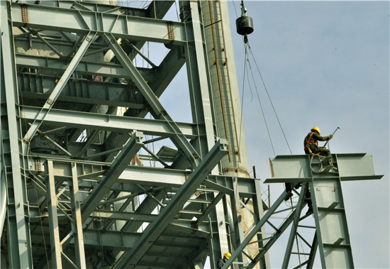2月8日臘月26日,在項(xiàng)目施工工地上,工人們正忙個(gè)不停:已經(jīng)封頂?shù)母郀t上工人們正在對(duì)最后的設(shè)備進(jìn)行安裝、即將峻工的儲(chǔ)料棚工地上工人們正在澆筑混凝土……工地上一派繁忙,塔吊長(zhǎng)長(zhǎng)的“手臂”來(lái)回?cái)[動(dòng)。