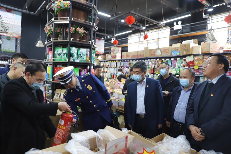為落實河南省煙花爆竹禁售禁放工作電視電話會議和全市煙花爆竹禁售禁放暨春節(jié)期間污染防治工作會議精神,做好春節(jié)期間火災預防、煙花爆竹禁售禁放工作,確保節(jié)日期間物資供應充足、市場秩序持續(xù)穩(wěn)定,2月9日,周口港區(qū)黨委書記孫鵬前往轄區(qū)居民社區(qū)、市場督導春節(jié)期間各項保障工作落實情況。港區(qū)黨委委員杜廣賢、公安分局局長康群泉陪同。