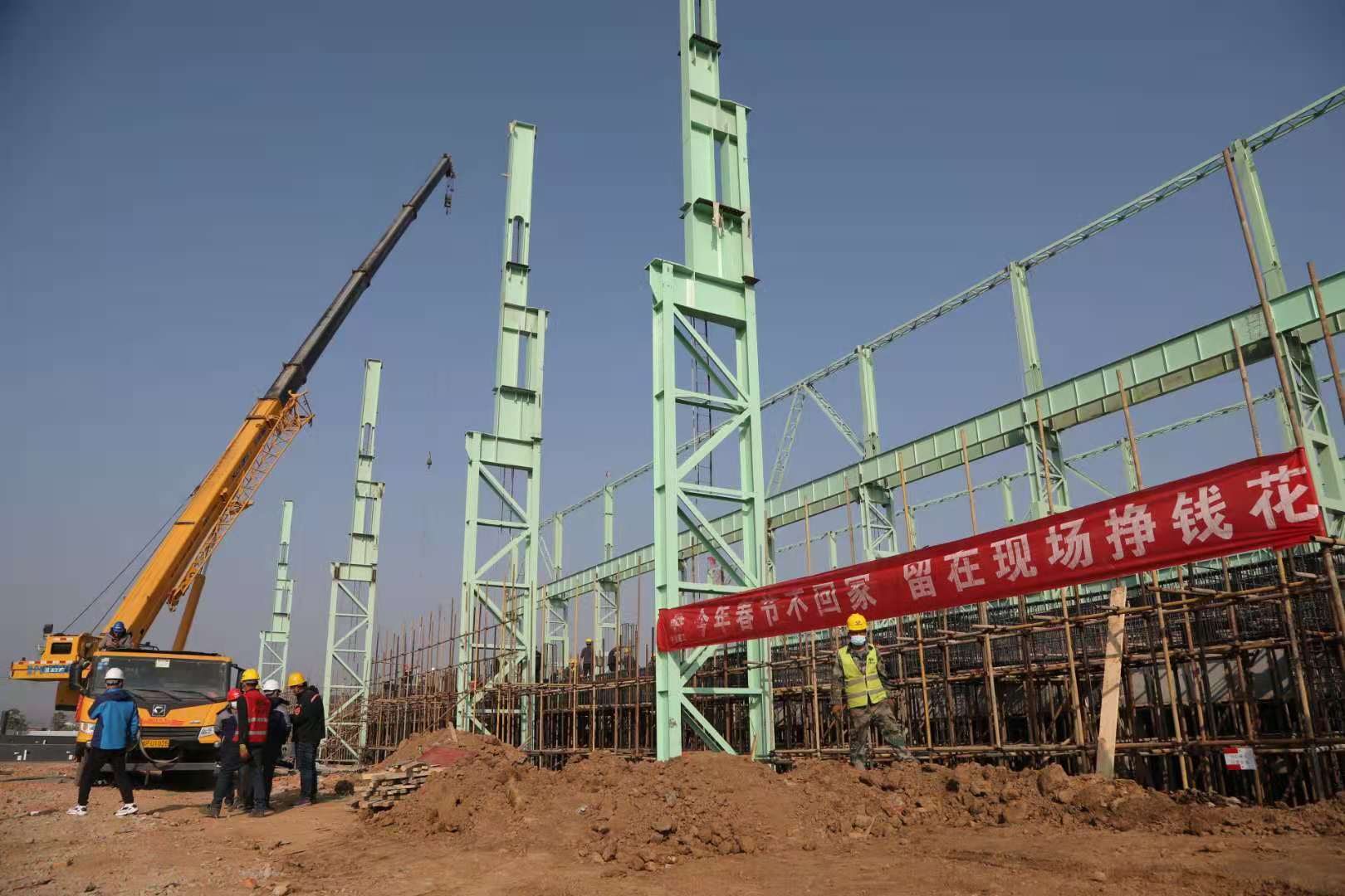 為實(shí)現(xiàn)今年5月份整體建成出鋼的目標(biāo),春節(jié)期間,安鋼周口鋼鐵項(xiàng)目一期一步項(xiàng)目工地,4000多名建筑工人放棄節(jié)假日與家人團(tuán)聚的時(shí)間,奮戰(zhàn)施工一線。目前,原料場(chǎng)、燒結(jié)、高爐、煉鋼連鑄、軋鋼、制氧、供配電等16個(gè)主項(xiàng)目,均按時(shí)序進(jìn)度順利推進(jìn)。②7