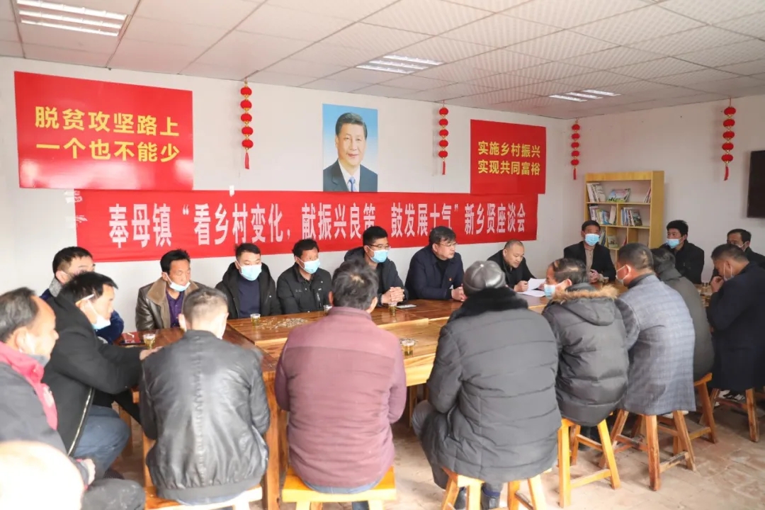 匯聚眾人之力才是發(fā)展之力,凝聚眾人智慧才是最高智慧。春節(jié)之際,奉母鎮(zhèn)黨委為進(jìn)一步調(diào)動鄉(xiāng)賢的積極性和創(chuàng)造性,共同探討家鄉(xiāng)的發(fā)展與建設(shè),最大限度贏得鄉(xiāng)賢對家鄉(xiāng)發(fā)展的支持和反哺,有效推動資金回流、項目回歸、信息回傳、人才回鄉(xiāng),集發(fā)展“錦囊妙計”,匯聚助推鄉(xiāng)村振興的新力量,特意把七二村的“看鄉(xiāng)村變化,獻(xiàn)振興良策,鼓發(fā)展士氣”新鄉(xiāng)賢座談會會場布置到“鄉(xiāng)村大食堂”。奉母鎮(zhèn)黨委書記陳鵬、武裝部長胡波濤參加座談會。陳鵬作了講話。