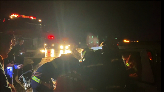 2月21日19時(shí)許,大廣高速周口段2064KM附近發(fā)生一起交通事故,大貨車沖破護(hù)欄與對(duì)向車道內(nèi)的兩輛私家車發(fā)生碰撞,司機(jī)和一名5歲女童被困車中。接到報(bào)警后,民警、消防、醫(yī)護(hù)人員迅速趕到現(xiàn)場開展救援,20時(shí)39分兩人被救出并接受進(jìn)一步治療。
