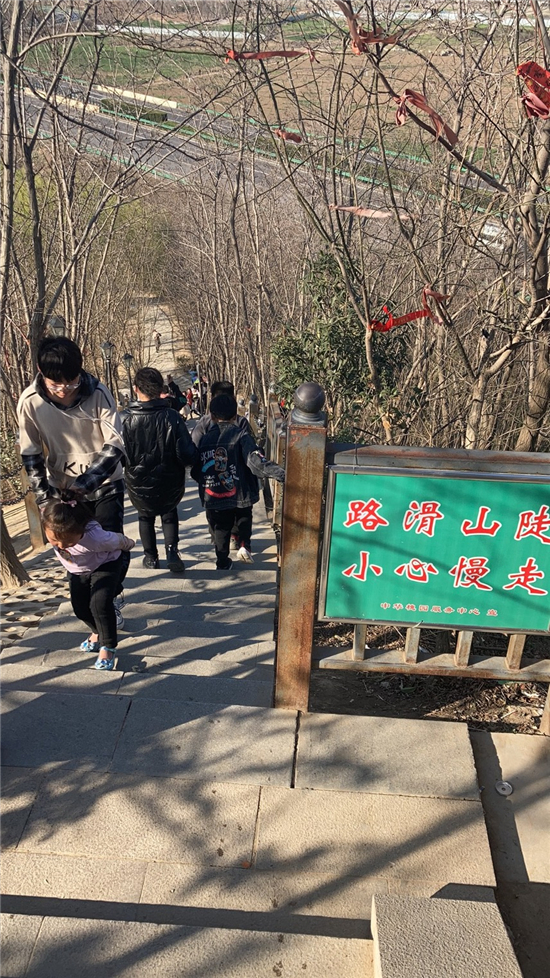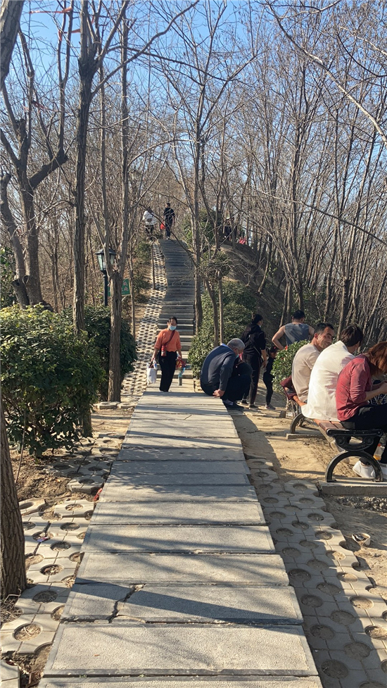 在槐香湖邊,年輕人三五結(jié)伴登上游艇,“坐船能到湖那邊的小島,島上也有槐樹(shù),拍照肯定特別漂亮。”返鄉(xiāng)大學(xué)生把七星島上的景色留在了自己的相機(jī)里。七星島與槐香湖相連的橋上,人潮擁擠,有的人席地而坐,觀賞著橋上的風(fēng)景。當(dāng)問(wèn)道在外市工作的王先生游玩感受時(shí),他回答到:“年后上班沒(méi)時(shí)間鍛煉身體,今天我把全家人帶來(lái)登山,呼吸一下新鮮空氣。”③5