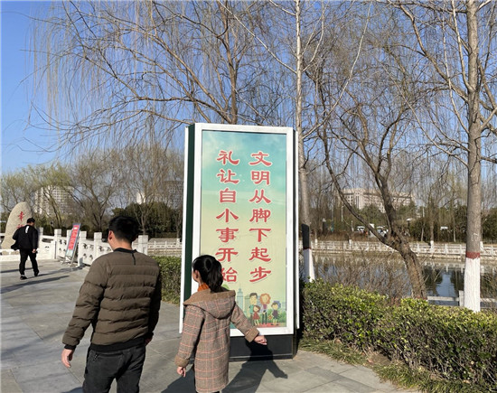 2017年8月18日,周口市委、市政府隆重召開創(chuàng)建全國綠化模范城、國家園林城市、全國雙擁模范城、國家衛(wèi)生城市、全國文明城市提名城市工作動(dòng)員大會(huì)。此后,干部群眾同心同德、共同努力,我市的城市面貌和市民的精神風(fēng)貌發(fā)生了巨大變化。2020年12月16日,周口市第四屆人民代表大會(huì)常務(wù)委員會(huì)第二十七次會(huì)議通過了《周口市文明行為促進(jìn)條例》,該條例已于2021年1月1日實(shí)施。條例中第十四條規(guī)定公民應(yīng)當(dāng)文明旅游,應(yīng)做到服從景區(qū)景點(diǎn)管理,愛護(hù)景區(qū)景點(diǎn)公共設(shè)施;不損害名勝古跡、珍貴文物、古樹名木及其他重要?dú)v史文化遺產(chǎn),不刻畫、不涂污、不攀爬,不違反規(guī)定拍照、攝像、觸摸。在文明出游漸成市民自覺和共識(shí)的基礎(chǔ)上,又從制度層面進(jìn)一步引導(dǎo)市民樹立文明出游從我做起、從現(xiàn)在做起的意識(shí)。③52021年1月,我市已順利入選全國文明城市提名城市。向全國文明城市沖擊,我們信心百倍。