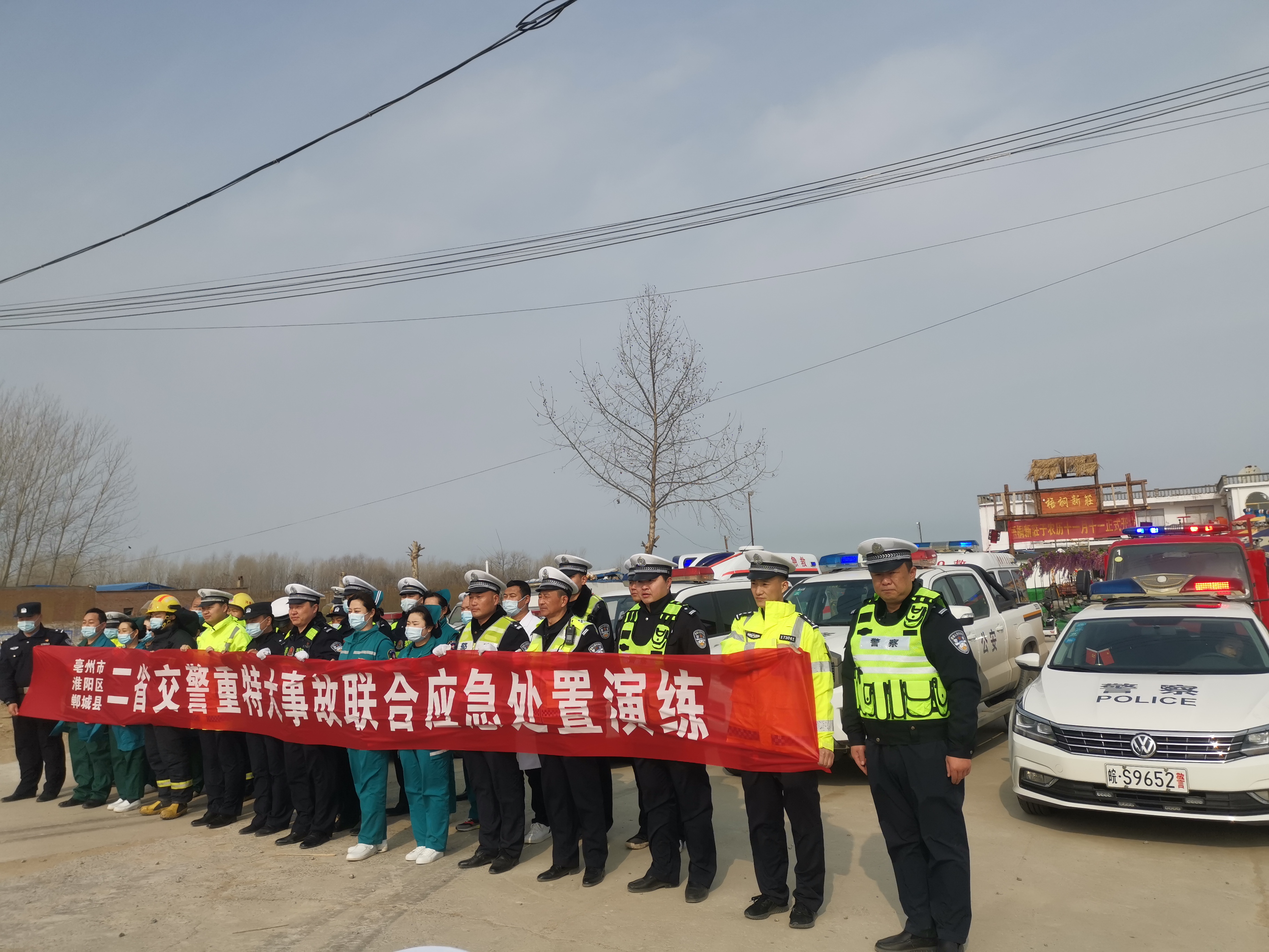 為提高冬季惡劣天氣條件下突發(fā)道路交通事故應(yīng)急處置能力、各部門之間的協(xié)同作戰(zhàn)以及應(yīng)急指揮系統(tǒng)的組織協(xié)調(diào)能力,最大限度減少因交通事故導(dǎo)致的人員傷亡,確保人民群眾生命財(cái)產(chǎn)安全,鄲城縣公安交通警察大隊(duì)聯(lián)合淮陽(yáng)區(qū)公安交通警察大隊(duì)和安徽省亳州市公安交通警察支隊(duì)四大隊(duì)雙溝中隊(duì),及鄲城縣公安局南豐鎮(zhèn)派出所,應(yīng)急管理、鄲城縣麗清醫(yī)院,鄲城縣中心醫(yī)院,道路基金救助辦公室等部門開展了道路交通事故快速發(fā)現(xiàn)、及時(shí)救援、有效救治、妥善救助的“四位一體”聯(lián)動(dòng)型應(yīng)急處置演練活動(dòng)。