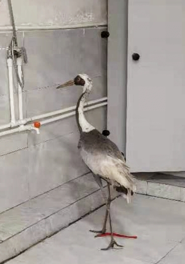 2月24日,鄲城縣吳臺(tái)鎮(zhèn)村民在田地里干活時(shí),發(fā)現(xiàn)一只“大鳥”,身體虛弱的趴在地里不能飛行,村民看著這只大鳥一雙腿非常長,像是丹頂鶴,他不敢怠慢,立刻撥打救助電話,鄲城縣自然資源局接到救助電話后,局長楊玉民、分管副局長李北斗高度重視,立即指派鄲城縣森林公安局及野生動(dòng)植物保護(hù)和自然保護(hù)地管理股工作人員前往救助。經(jīng)周口市野生動(dòng)物救助中心工作人員現(xiàn)場(chǎng)觀察初步鑒定后認(rèn)為,這是一只白枕鶴,屬于國家一級(jí)保護(hù)珍禽。據(jù)百度了解:白枕鶴(學(xué)名:Grus vipio)體形與丹頂鶴相似,略小于丹頂鶴,而大于白頭鶴。上體為石板灰色。尾羽為暗灰色,末端具有寬闊的黑色橫斑。世界白枕鶴數(shù)量稀少,種群僅存不足5000只,白枕鶴棲息于開闊的平原蘆葦沼澤和水草沼澤地帶,也棲息于開闊的河流及湖泊岸邊,以及鄰近的沼澤草地,有時(shí)出現(xiàn)于農(nóng)田和海灣地區(qū),尤其是遷徙季節(jié)。村民發(fā)現(xiàn)的這只白枕鶴可能就是在遷徙過程中受傷才從空中掉落。