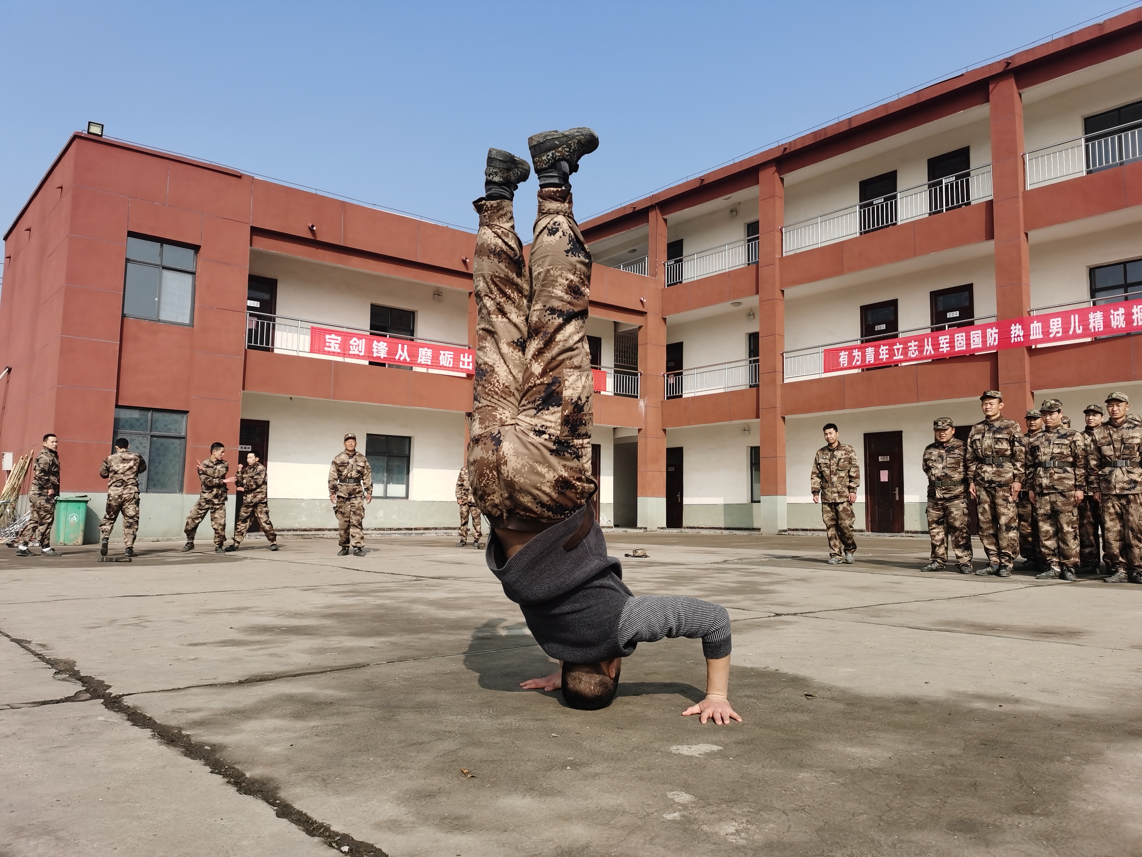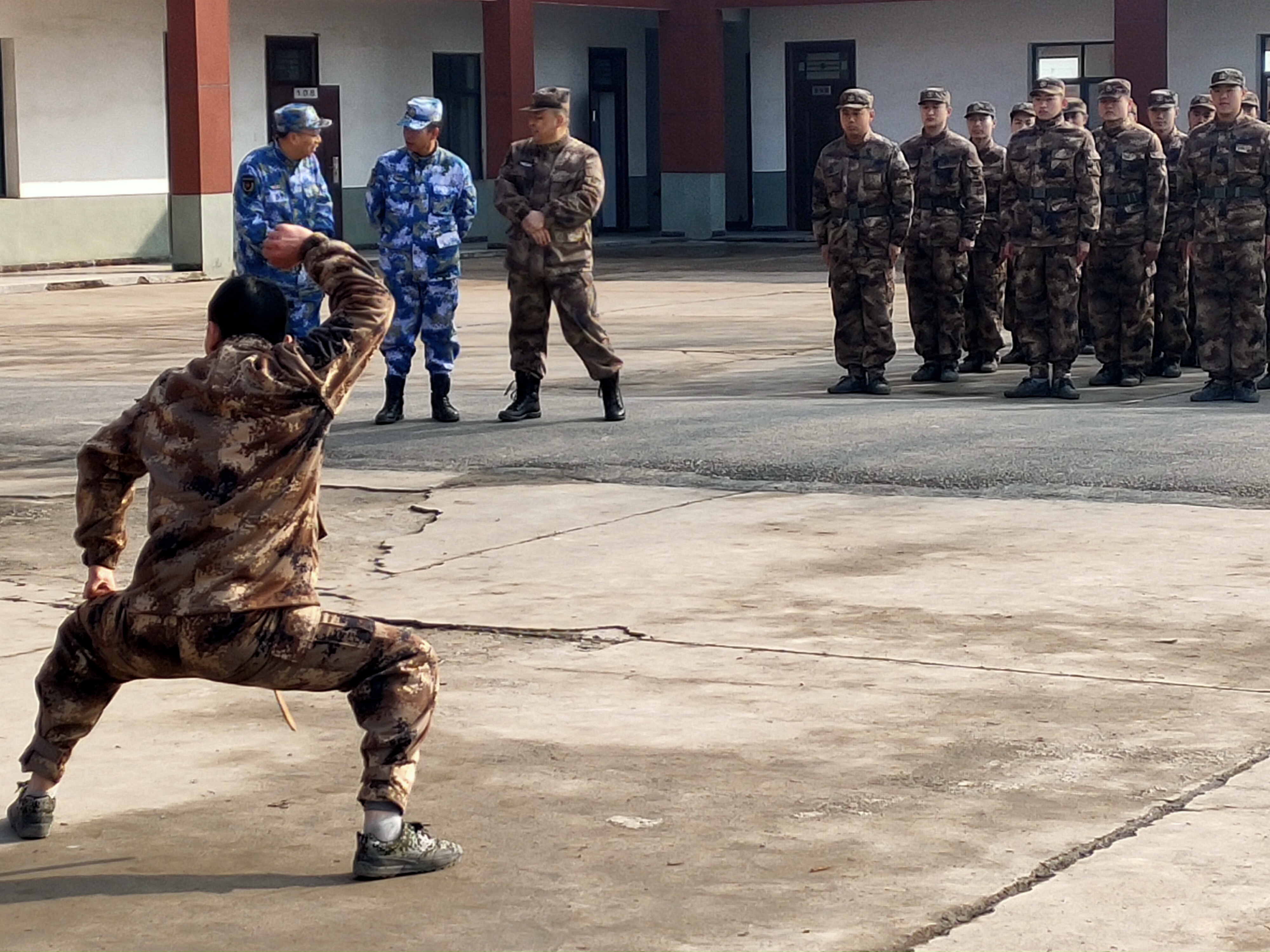 “報告首長,我叫趙三朋,畢業(yè)于武漢體育學院,武術套路、散打和兵器專業(yè)。”在戰(zhàn)友們的歡呼聲中,趙三朋主動請纓表演了一套傳統(tǒng)武術套路,只見他一招一式行云流水、虎虎生威 ,前后空翻嫻熟到位、收放自如,迎得戰(zhàn)友們陣陣喝彩聲,湯維政也禁不住連聲稱贊。