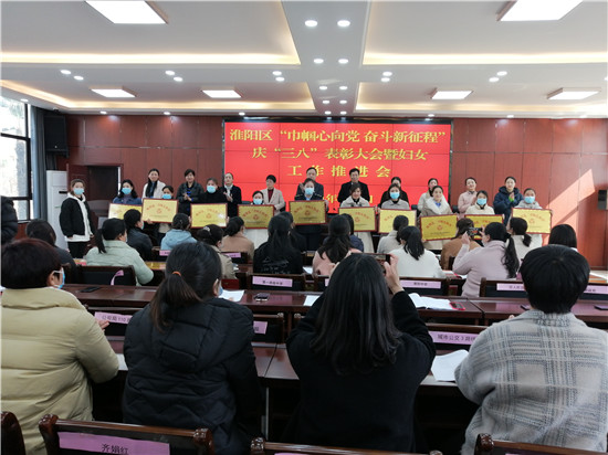 3月2日,淮陽(yáng)區(qū)召開“巾幗心向黨 奮斗新征程”慶“三八”表彰大會(huì)暨婦女工作推進(jìn)會(huì),區(qū)委副書記胡東河、副區(qū)長(zhǎng)朱希炎出席會(huì)議,區(qū)婦聯(lián)全體班子成員和兼掛職副主席,各鄉(xiāng)(鎮(zhèn)、場(chǎng))、產(chǎn)業(yè)集聚區(qū)、區(qū)直各單位分管副職和婦聯(lián)干部、受表彰的先進(jìn)集體和先進(jìn)個(gè)人280余人參加會(huì)議。
