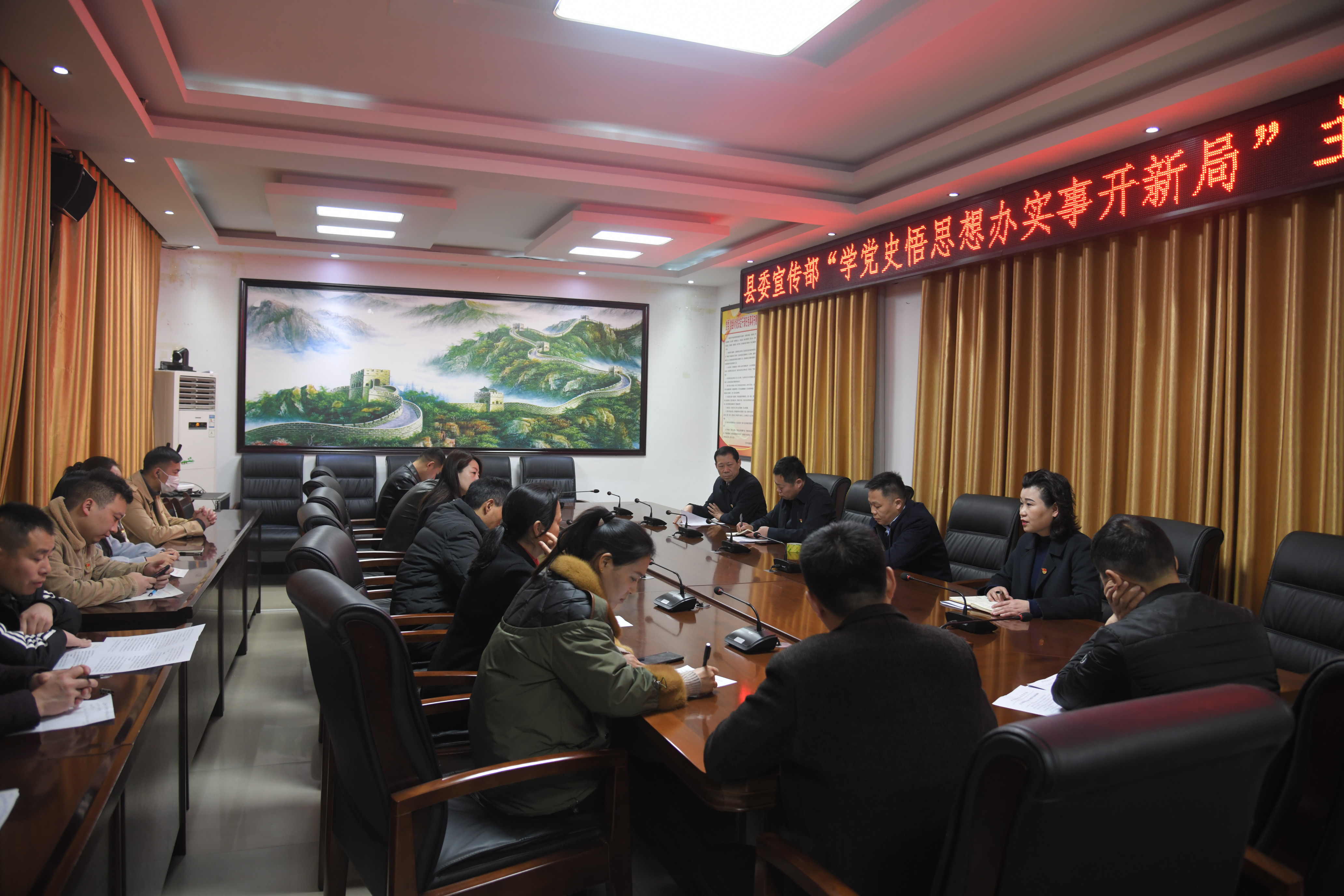 會(huì)上,梁燕對(duì)宣傳部黨員干部廉政建設(shè)工作提出具體要求,希望大家自覺地嚴(yán)以律己,保持政治上清醒、經(jīng)濟(jì)上清楚,主動(dòng)接受監(jiān)督。鄭春來就近期宣傳部黨員干部思想教育、財(cái)務(wù)紀(jì)律、學(xué)習(xí)宣傳等工作進(jìn)行安排,要求大家通過學(xué)黨史、悟思想、辦實(shí)事、開新局,力爭(zhēng)全縣宣傳思想工作取得更大成績(jī),再上一個(gè)新臺(tái)階。