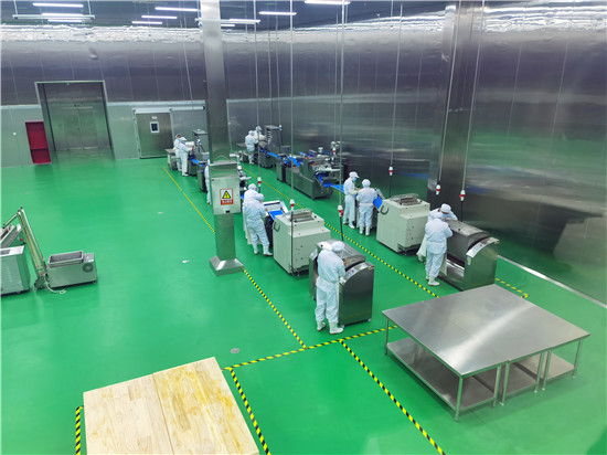 據(jù)了解,周口乾盛中央廚房是川匯區(qū)2020年重點(diǎn)招商引資項目。公司以綠色、健康、營養(yǎng)、安全的餐飲服務(wù)為宗旨,采用國內(nèi)先進(jìn)的食品自動生產(chǎn)流水線,采取“統(tǒng)一配方、統(tǒng)一加工、統(tǒng)一配送”的方式,為全市大中專院校、中小學(xué)校、企事業(yè)單位等提供專業(yè)團(tuán)膳服務(wù)。記者在現(xiàn)場看到,該企業(yè)的生產(chǎn)操作間細(xì)分為面食、烹飪、米飯、凈菜等獨(dú)立區(qū)域。操作間里的工作人員穿戴一次性消毒服裝、口罩、頭罩、鞋套,各司其職、有條不紊地操作設(shè)備。全廠安裝有300多個攝像頭,實(shí)現(xiàn)360度無死角監(jiān)控,可以隨時查看生產(chǎn)和配餐情況。在蔬菜清洗處理方面,該企業(yè)先對蔬菜進(jìn)行拆箱、分揀并開始一次清洗,然后進(jìn)行二次清洗、切割和脫水,使用凈化水對蔬菜進(jìn)行旋流沖洗,并通過探針探測水的潔凈度,根據(jù)水質(zhì)量隨時更換。生產(chǎn)操作間內(nèi)的先進(jìn)工藝和設(shè)備也格外吸人眼球,旋轉(zhuǎn)式燃?xì)獬村佋谶@里被稱為炒菜機(jī)器人,讓炒菜實(shí)現(xiàn)了智能化、標(biāo)準(zhǔn)化,工作人員只需將切配脫水后的材料按照標(biāo)準(zhǔn)調(diào)配好入鍋,設(shè)置自動運(yùn)轉(zhuǎn)程序就可以,不用人工攪拌。