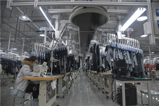 3月8日上午,位于商水縣產(chǎn)業(yè)集聚區(qū)內(nèi)的河南阿爾本制衣有限公司數(shù)千名女工在縫制訂單衣服。