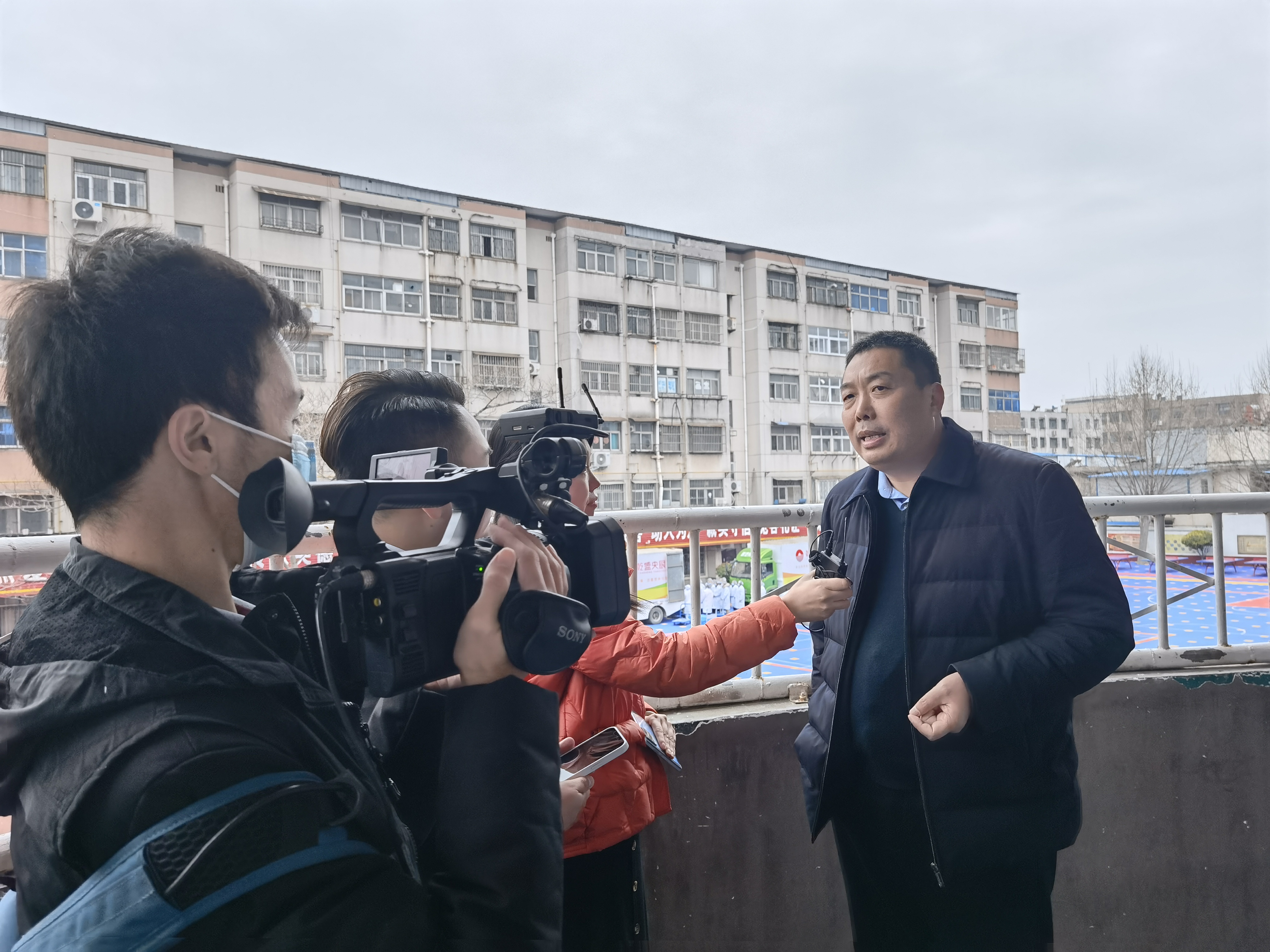 (七一路二小校長邵在斌接受周口報業(yè)融媒體直播團隊采訪)