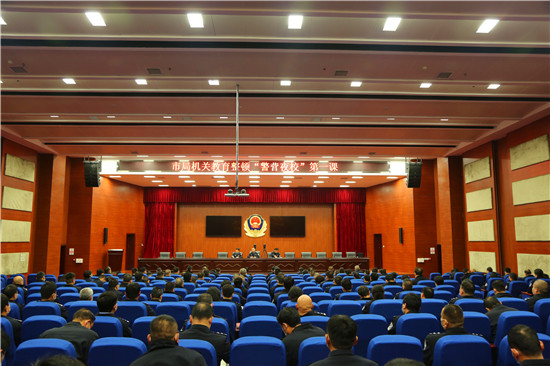 3月10日晚,“警營夜?!钡谝徽n正式開班開講。市公安局黨委委員、政治部主任郭冰與230名副科職以上民警一起參加學(xué)習(xí)。市公安局政治部黨支部副書記、三級(jí)高級(jí)警長韓鳳城主持第一課。