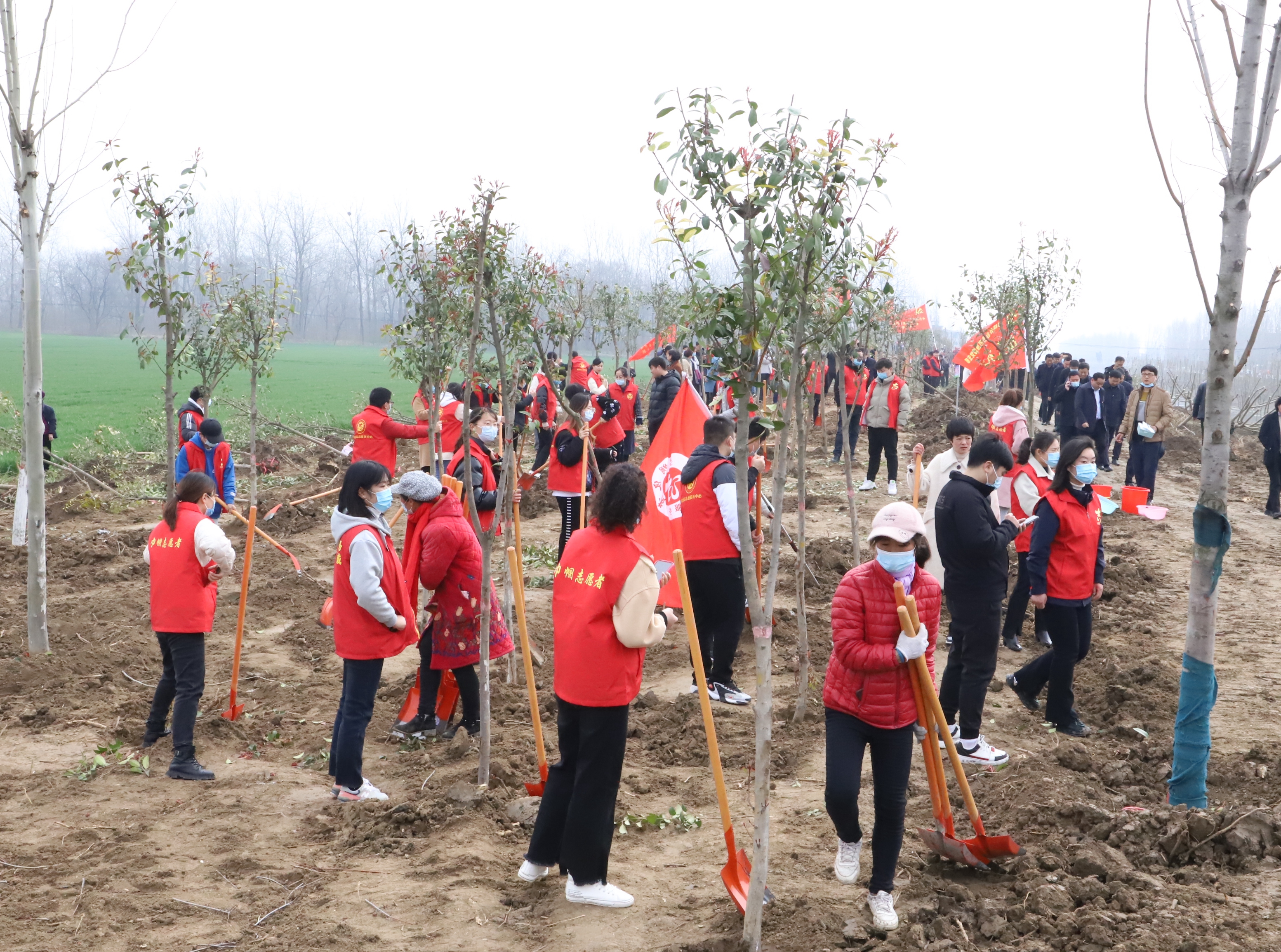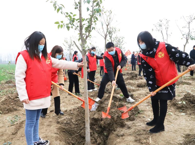 草長鶯飛,春回大地。3月12日,在第43個(gè)植樹節(jié)之際,全市掀起義務(wù)植樹熱潮,黨員干部、志愿者、市民踴躍參與義務(wù)植樹活動。扶正樹苗、揮鍬培土、分層踩實(shí)、堆起圍堰、提水澆灌,認(rèn)真地完成著每一道工序,栽下了一棵棵樹苗,為改善生態(tài)環(huán)境、綠化美麗家園種下了一棵棵綠色的希望。圖為鄲城縣義務(wù)植樹現(xiàn)場。