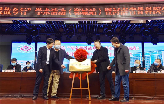 8時10分,學(xué)術(shù)活動暨揭牌儀式開始。國內(nèi)知名小兒外科專家、鄭大一附院原副院長王家祥教授及專家團隊,鄲城縣人民政府副縣長張凱,鄲城縣衛(wèi)健委黨組書記、主任付登霄,鄲城縣人民醫(yī)院院長于健等出席儀式。鄭大一附院專家團隊成員有:醫(yī)務(wù)處處長王守俊教授,宣傳處處長曹詠教授,骨科主任許建中教授,骨科主任皮國富教授,神經(jīng)介入科主任管生教授,小兒外科副主任張謙教授,醫(yī)學(xué)裝備部黨支部副書記楊曉鵬教授,介入科副主任、鄲城縣人民醫(yī)院名譽院長李臻教授以及張弛副教授、馬勝利副教授、蘇安寧副教授、周紀(jì)妹護士長、任敏護士長、王宏天副教授、趙順鑫副教授、楊磊副教授、謝紅昌副教授、周青主治醫(yī)師、汪奇博士、李峰副教授等。