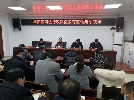 會議傳達全市司法行政系統(tǒng)隊伍教育整頓工作會議精神。并集中學習了《淮陽區(qū)司法行政隊伍教育整頓實施方案》和政法隊伍教育整頓應知應會相關內(nèi)容。