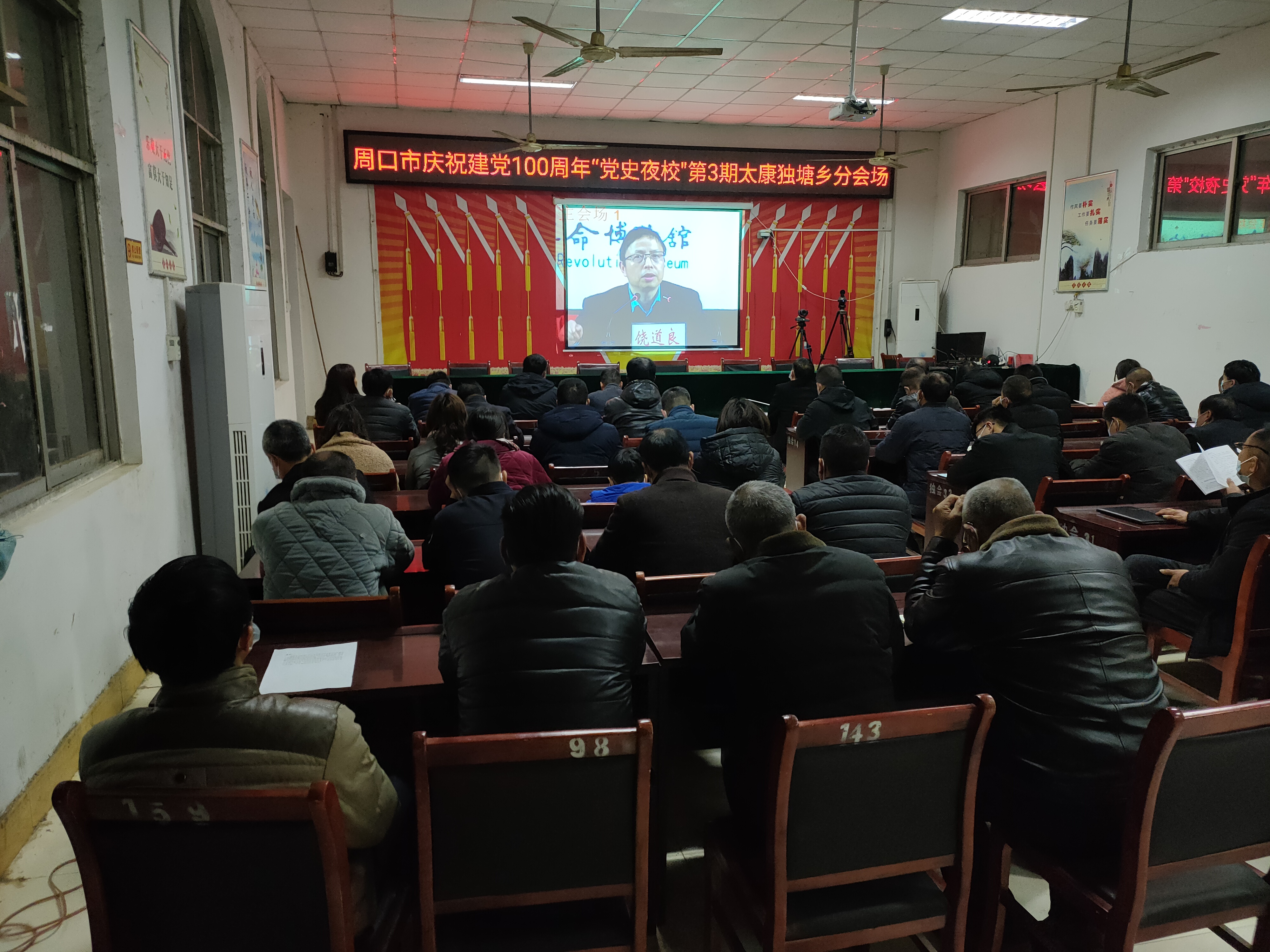 3月18日晚,周口市舉辦慶祝中國(guó)共產(chǎn)黨成立100周年“黨史夜?!钡谌趯n}講座。太康縣獨(dú)塘鄉(xiāng)組織鄉(xiāng)領(lǐng)導(dǎo)班子、鄉(xiāng)政府機(jī)關(guān)黨支部全體黨員、34個(gè)行政村支部書記、鄉(xiāng)直機(jī)關(guān)負(fù)責(zé)人、各行政村全體黨員、兩委干部在鄉(xiāng)政府會(huì)議室和各行政村分會(huì)場(chǎng)收聽收看。