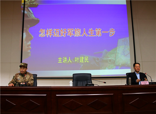 授課中,葉建民教授結(jié)合當(dāng)前國際國內(nèi)形勢(shì)和自身經(jīng)歷,深刻剖析了強(qiáng)國強(qiáng)軍的重要意義。為即將參軍入伍的“準(zhǔn)新兵”,如何端正入伍動(dòng)機(jī)、適應(yīng)部隊(duì)生活、弘揚(yáng)尚武精神、立志軍營(yíng)建功立業(yè),指明了前進(jìn)方向。葉教授整個(gè)授課見解獨(dú)到、分析透徹,語言精彩、內(nèi)涵深刻,讓人深受啟發(fā)、獲益匪淺,授課過程中多次爆發(fā)熱烈的掌聲。