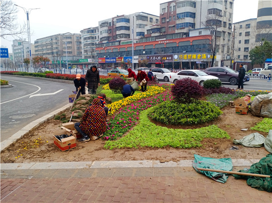 一場春雨過后,處處洋溢著勃勃生機。3月20日上午,記者在周口中心城區(qū)大慶路與交通大道交叉口處的紅綠燈旁看到,園藝工作人員正在忙碌著補種花木,黃色、綠色、紅色的花兒平鋪在一起組合成一道亮麗的風景,扮靚了街頭,令人賞心悅目。③2