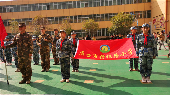 3月25日,周口紡織路小學(xué)學(xué)生正在參加“國(guó)防教育進(jìn)校園”主題活動(dòng),一天下來(lái),站軍姿、學(xué)旗語(yǔ)、體驗(yàn)迫機(jī)炮、觀看戰(zhàn)術(shù)表演和戰(zhàn)爭(zhēng)情景模擬等,讓孩子們懂得“祖國(guó)神圣不可侵犯”,愛軍報(bào)國(guó)意識(shí)大大增強(qiáng)。