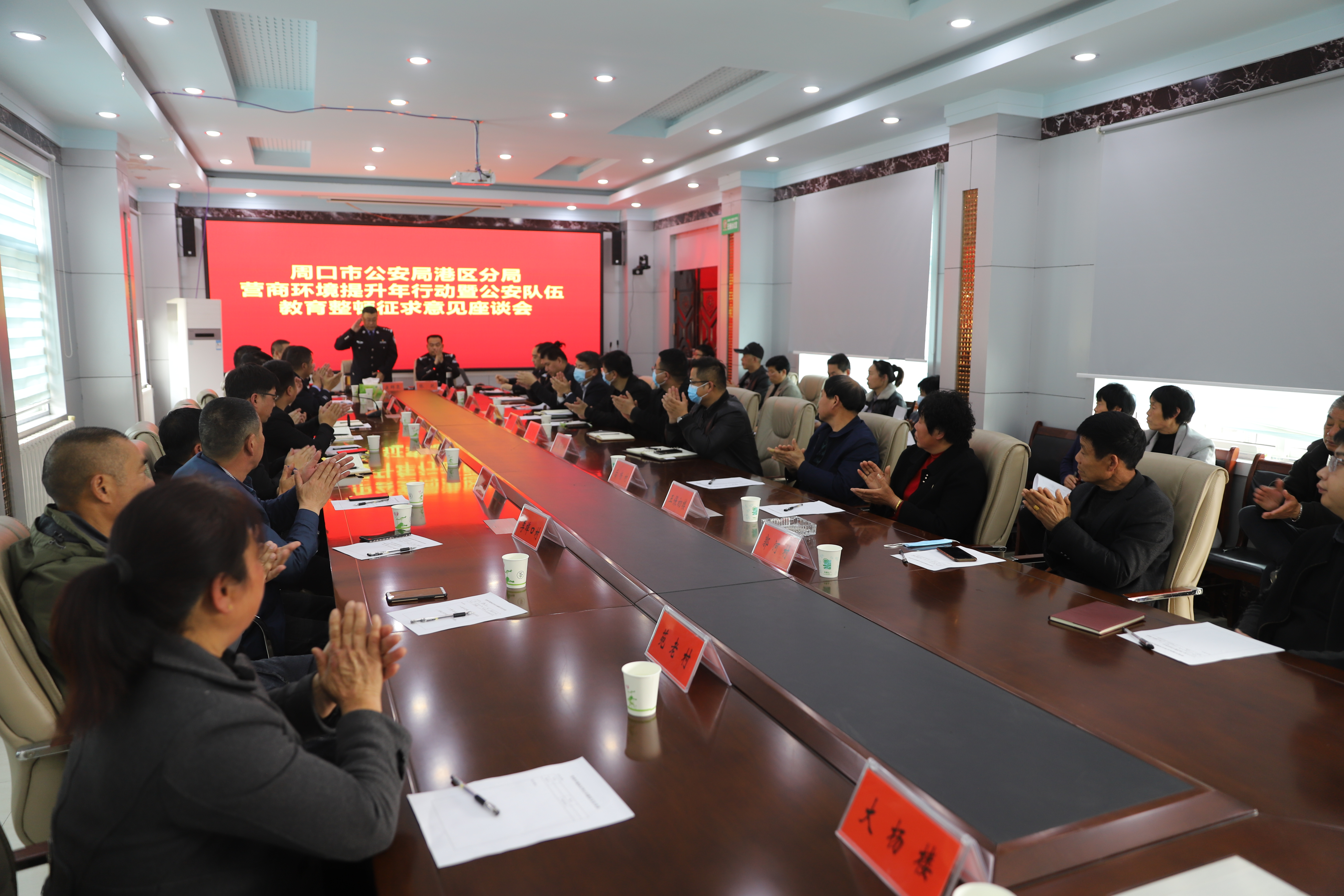 康群泉詳細(xì)介紹了分局為臨港經(jīng)濟(jì)發(fā)展提供保障和服務(wù)的12項(xiàng)新舉措,并誠懇邀請各企業(yè)代表結(jié)合自身工作與行業(yè)實(shí)際,對港區(qū)公安工作多提寶貴意見和建議,助力公安機(jī)關(guān)更好地發(fā)揮職能作用,為企業(yè)發(fā)展?fàn)I造穩(wěn)定的社會環(huán)境、安全的治安環(huán)境、優(yōu)質(zhì)的服務(wù)環(huán)境。與會人員結(jié)合企業(yè)經(jīng)營性質(zhì)和行業(yè)特點(diǎn),暢談了當(dāng)前治安環(huán)境、營商環(huán)境的巨大變化,充分肯定了港區(qū)公安維護(hù)安全穩(wěn)定作出的貢獻(xiàn),貼近實(shí)際地講了一些關(guān)于基礎(chǔ)設(shè)施、交通管理、周邊環(huán)境方面的問題、不足,并提出了對公安機(jī)關(guān)進(jìn)一步服務(wù)民營企業(yè)發(fā)展的期望。